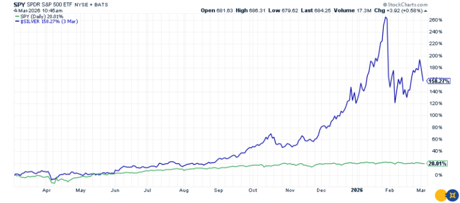 Silver Prices vs SPY 12 Months