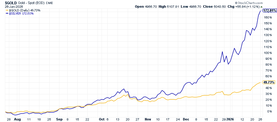 Gold and Silver, Six Month Chart